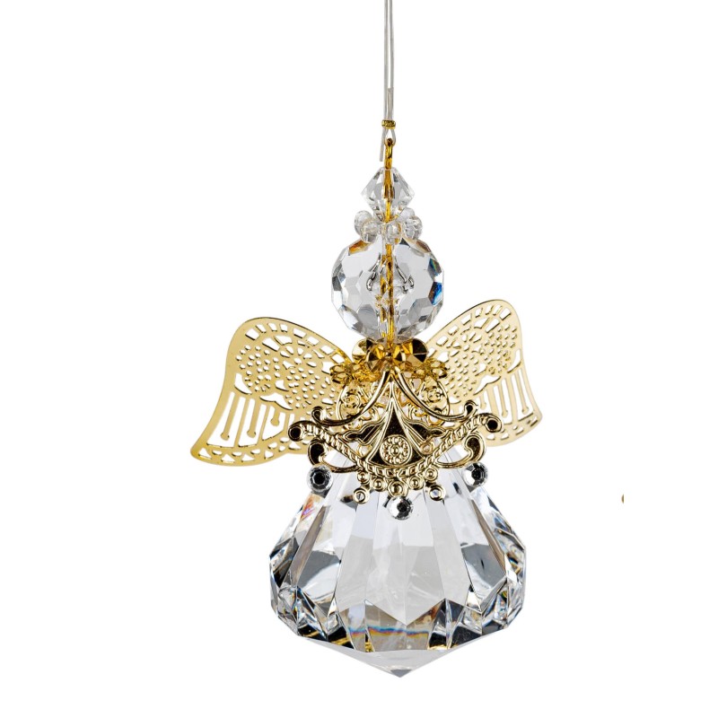 Hänger Engel Acryl klar mit goldenen Flügeln