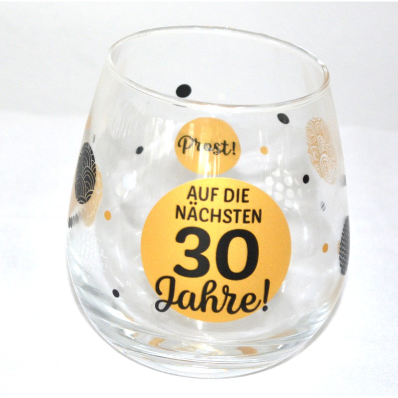 Glas mit Spruch "Auf die nächsten 30 Jahre ..."