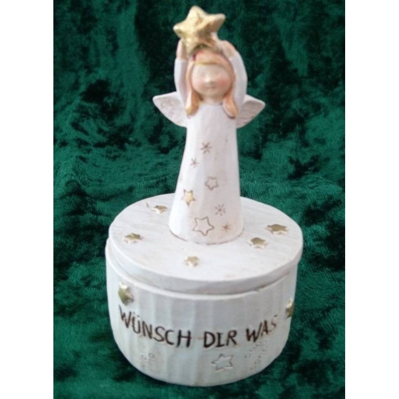 Der kleine Mutmacher Engel vom Hause Gilde steht auf der Dose