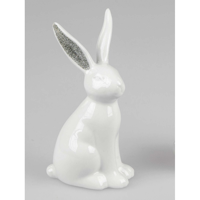 Hase in in weiß glasiert mit silbernen glitzernden Ohren