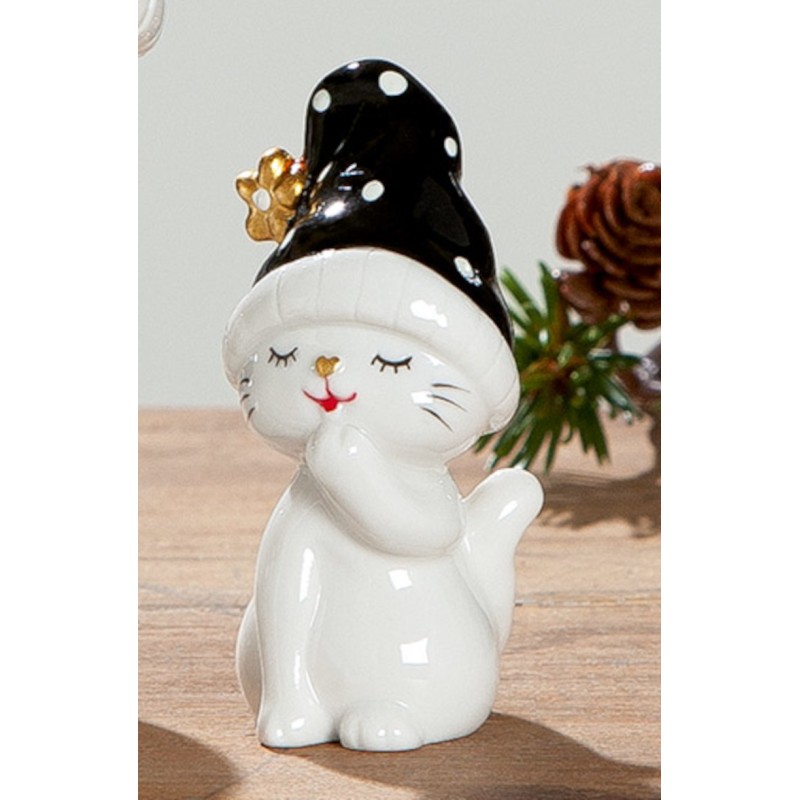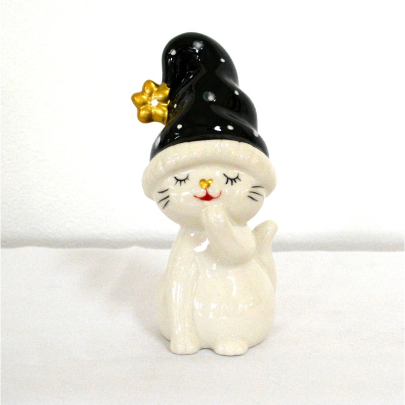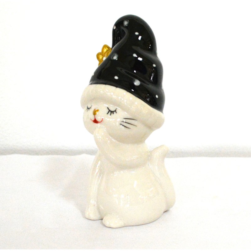 Katze sitzend mit schwarzer Mütze 18 cm