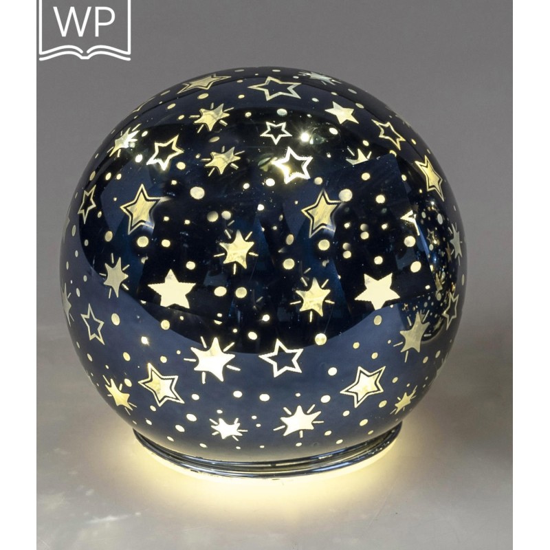 LED Deko Kugel dunkelblau 10 cm mit Sterne