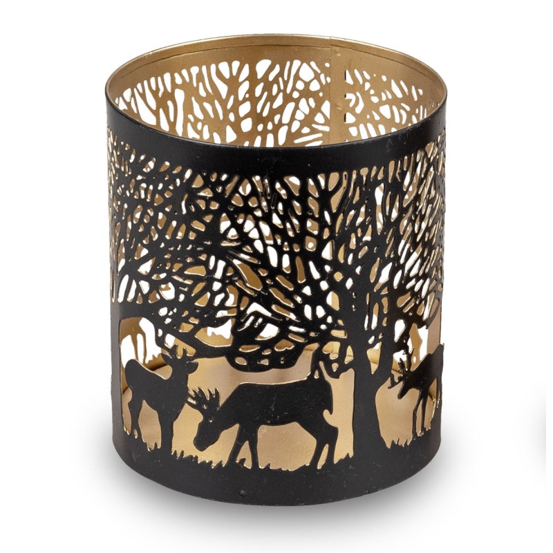 Windlicht Scherenschnitt schwarz gold 10 cm