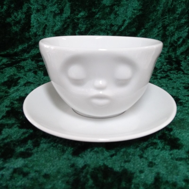 Kaffeetasse weiß 200 ml mit Gesicht küssend