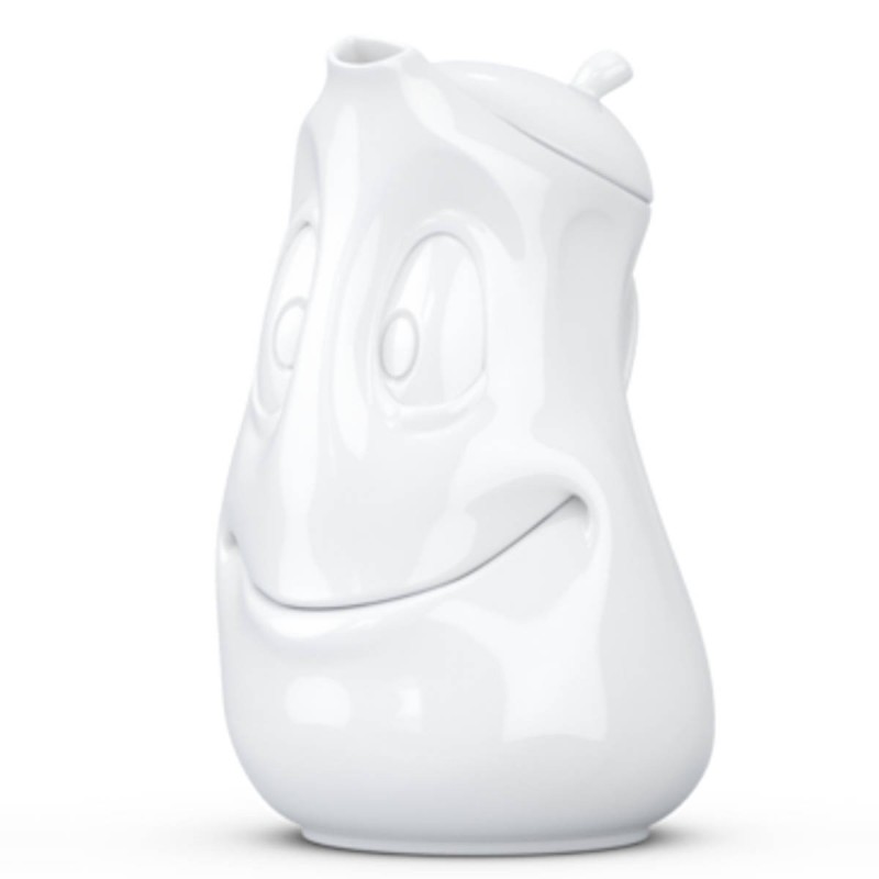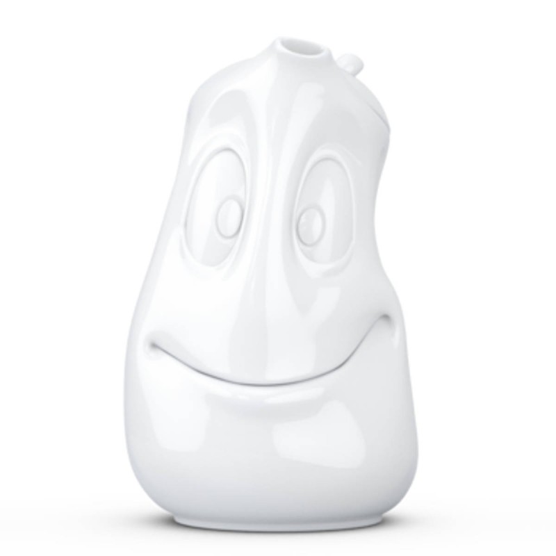Kanne mit Deckel weiß mit Gesicht Gut drauf