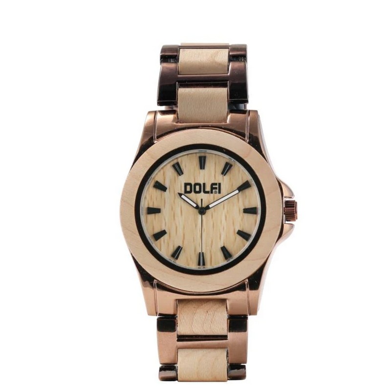 Die Armbanduhr Wesley ist eine Kombination aus natürlichem Ahorn Holz und Edelstahl, dessen rosé Farbe dieser Uhr einen besonders eleganten und einzigartigen Anblick verleiht.
