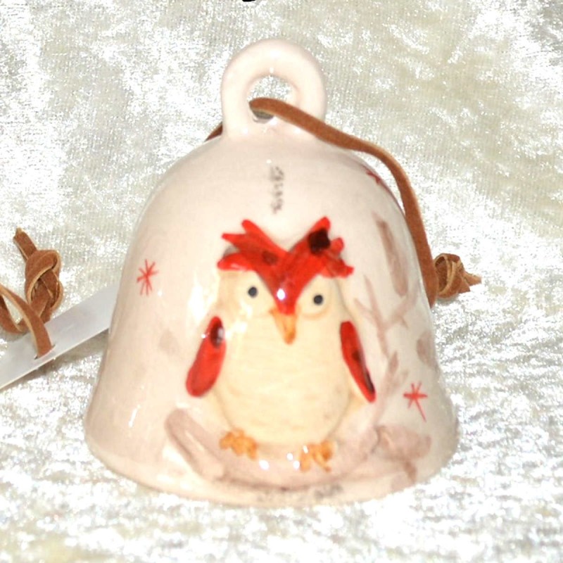 Glocke im Eulenmotiv aus glänzend lackierter Keramik.